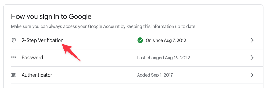 If you have 2-Step Verification turned on, under How you sign into Google, click 2-Step Verification. (If you don’t have 2-Step Verification turned on, search for App Password in the search box at the top of Settings.)